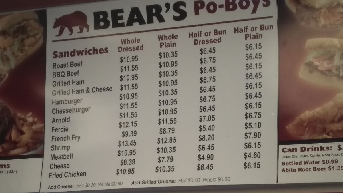 Overall, Bear's Restaurant is more than just a sandwich shop; it’s a local institution where the flavors of Louisiana come alive in every bite. Whether you’re a longtime local or just passing through, a visit to Bear's will leave you with full stomachs and happy hearts. Stop by for a taste; you won’t regret it!
